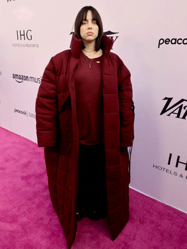 Variety Music Hitmakers Brunch Billie Eilish Maroon Puffer Trench Coat