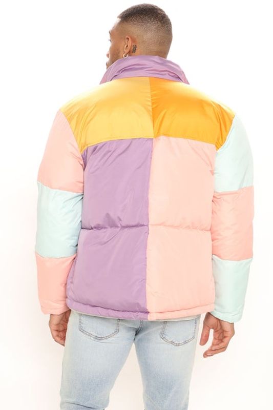 Color Block Poly Puffer Jacket