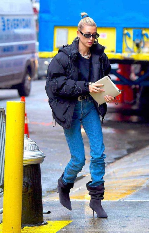 Hailey Baldwin Black Puffer Jacket