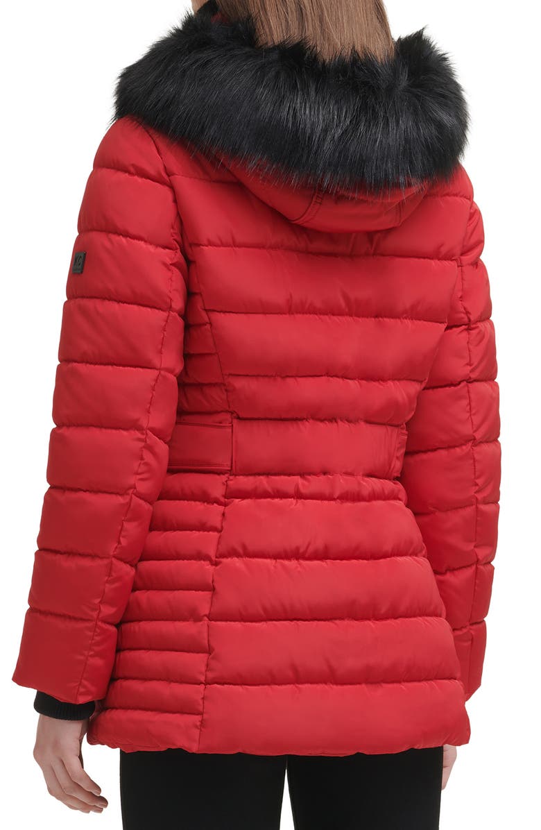 Hooded Puffer With Fur Trim Red and Black Hooded Coat