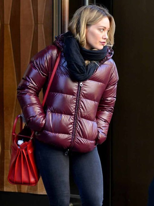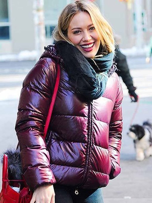 Younger Hilary Duff Puffer Maroon Hooded Jacket