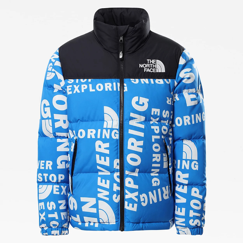Kids 1996 Printed Retro Nuptse Blue Nylon Jacket