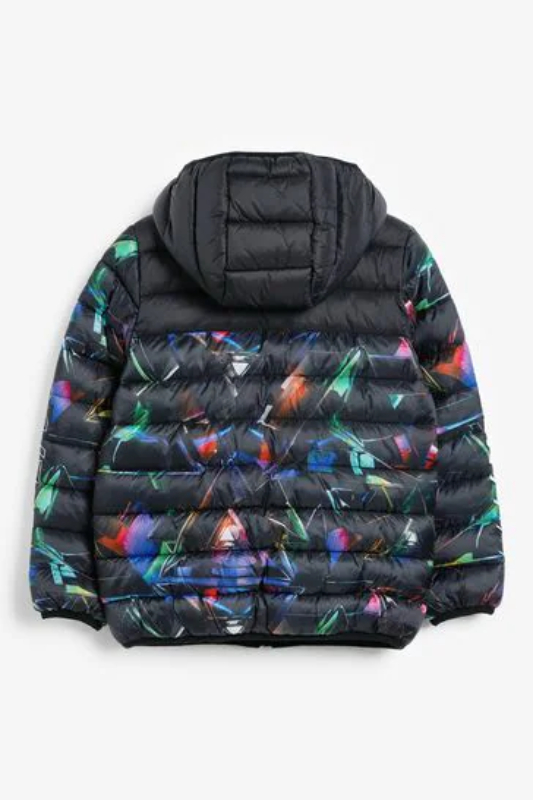 Kids Black Galactic Print Puffer Nylon Jacket