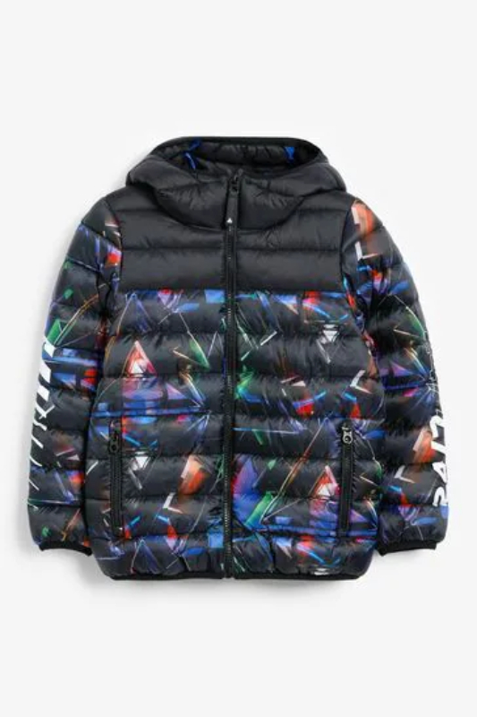 Kids Black Galactic Print Puffer Jacket
