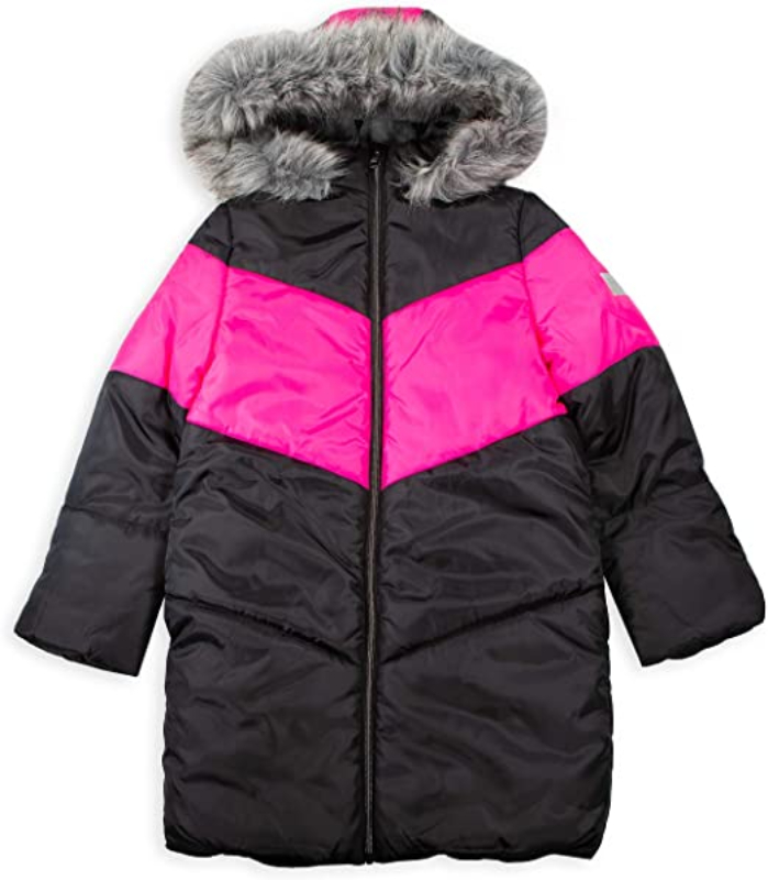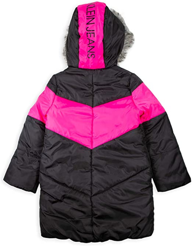 Kids Calvin Klein Long Puffer Chevron Black Polyester Coat