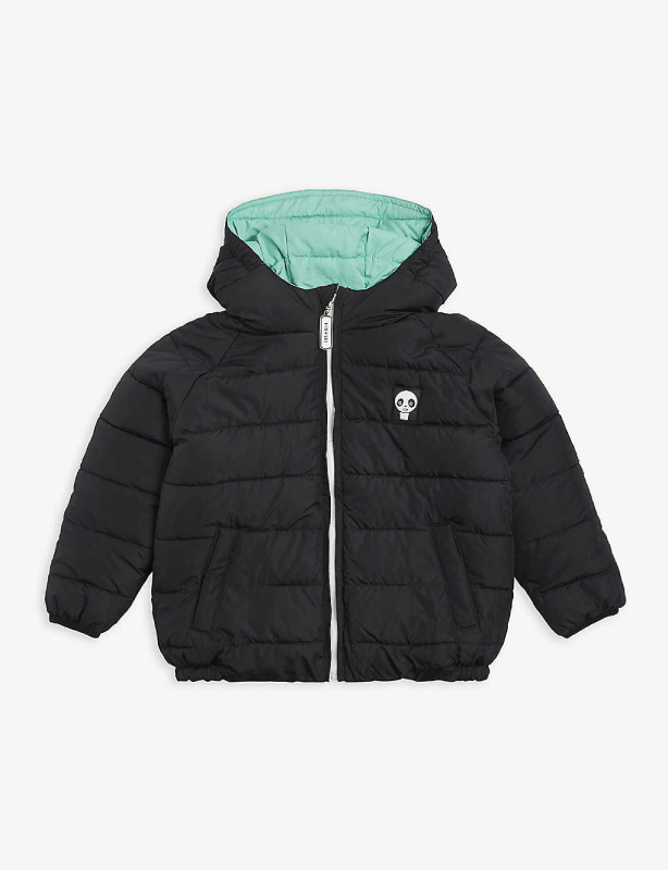 Kids Hooded Black Polyester Puffer Jacket