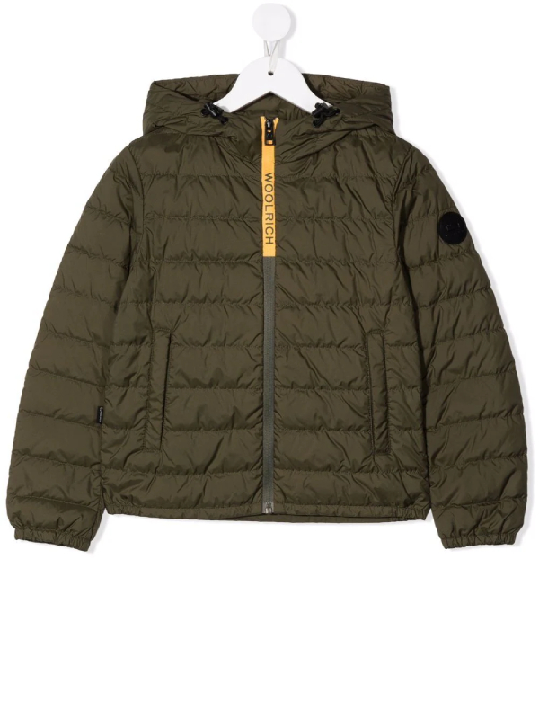 Kids Sundance Hooded Green Nylon Jacket