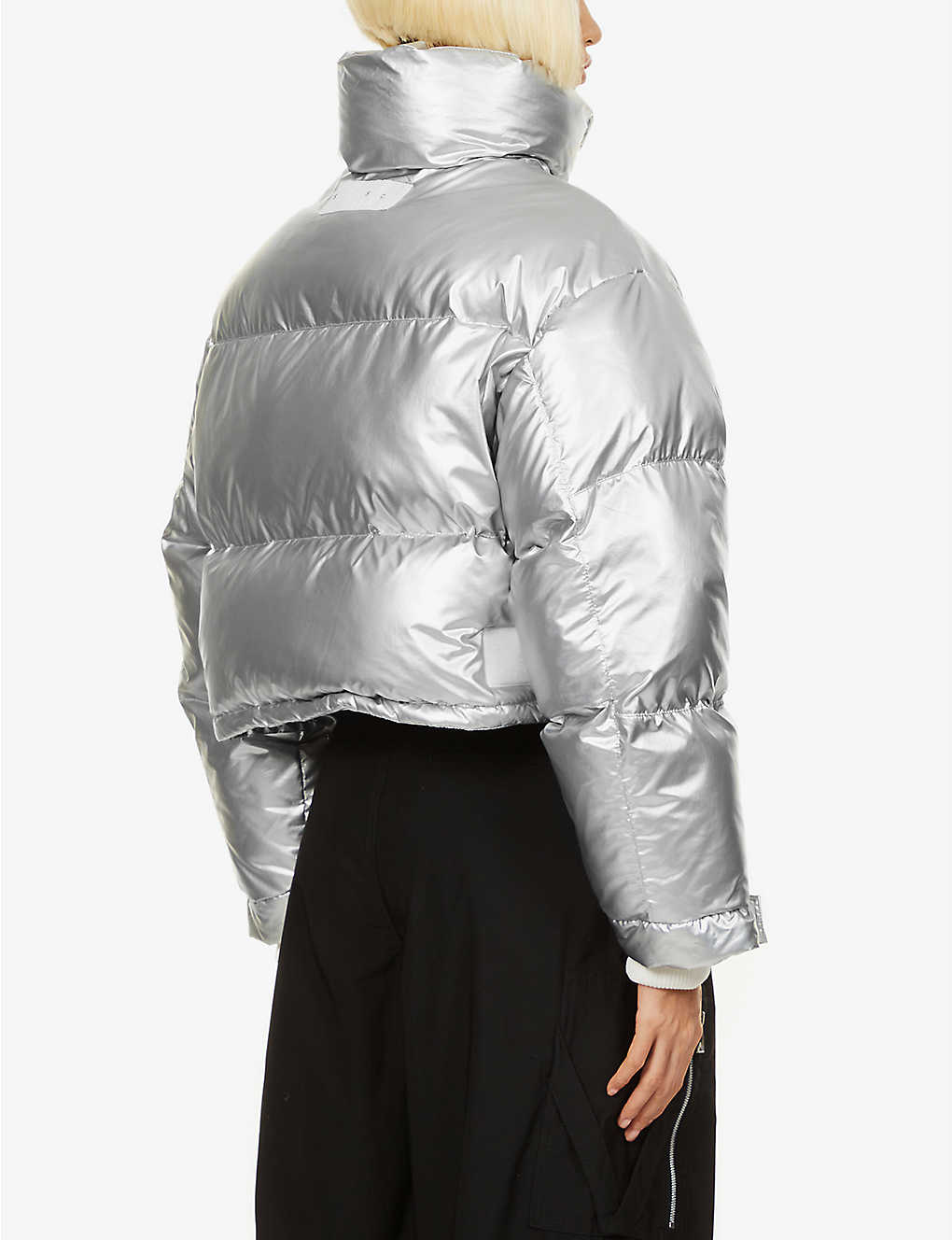 Laurel High Neck Shell Silver Puffer Jacket For Women