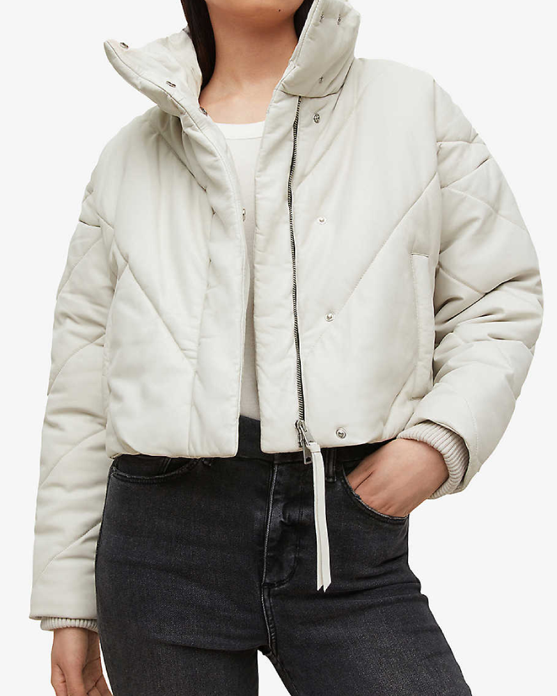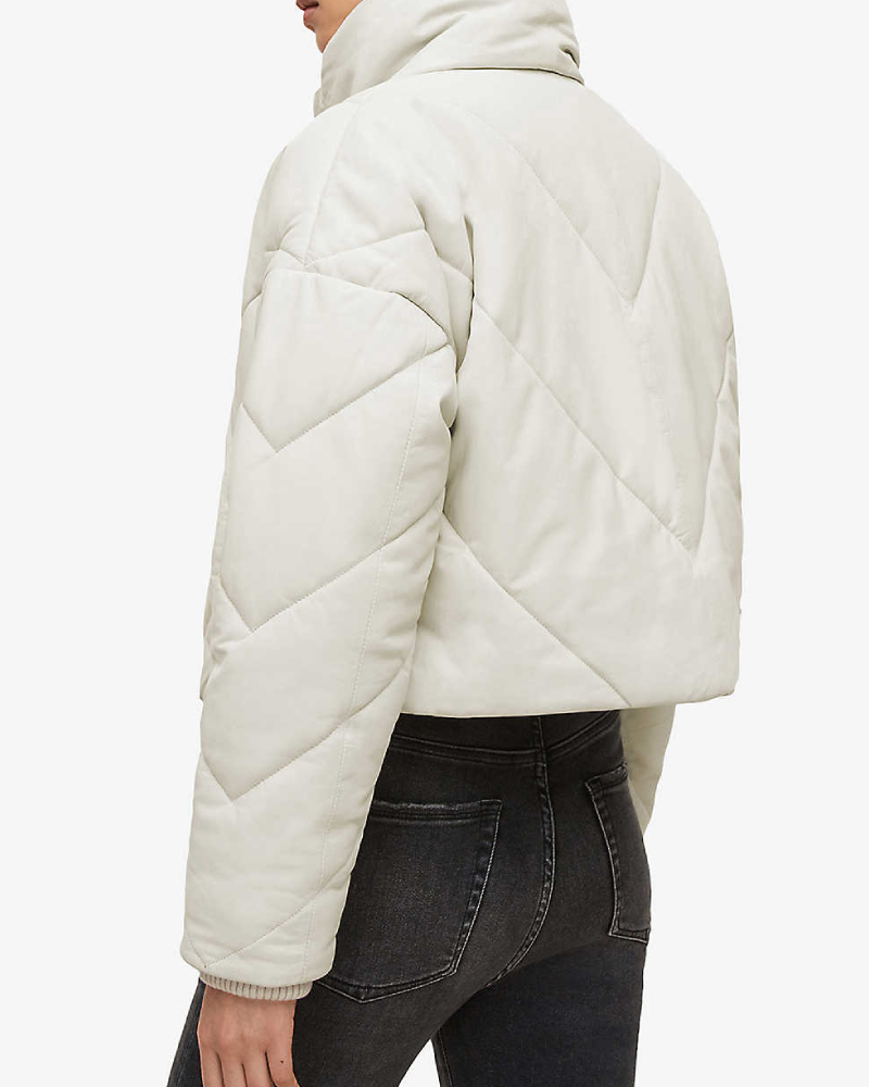 Miyla Cropped Leather White Bomber Jacket