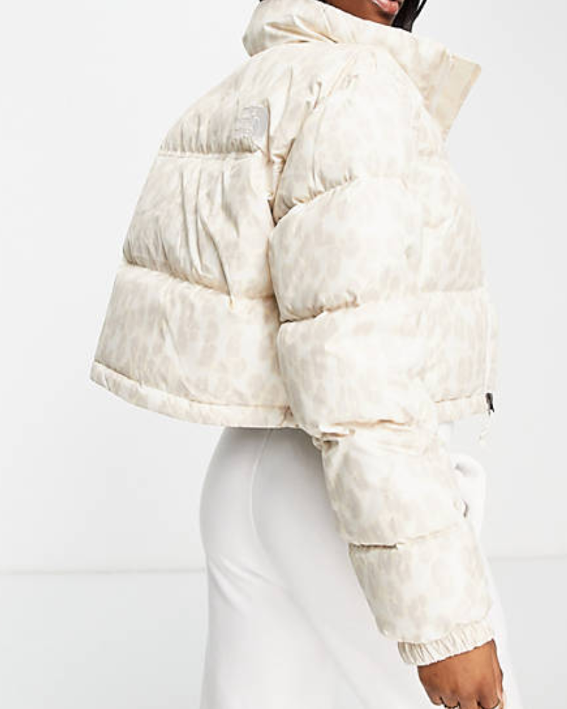 Nuptse Cropped Leopard Printed White Puffer Jacket