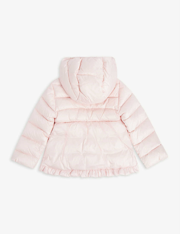 Odile Quilted Satin Frill-trimmed Puffer Pink Jacket