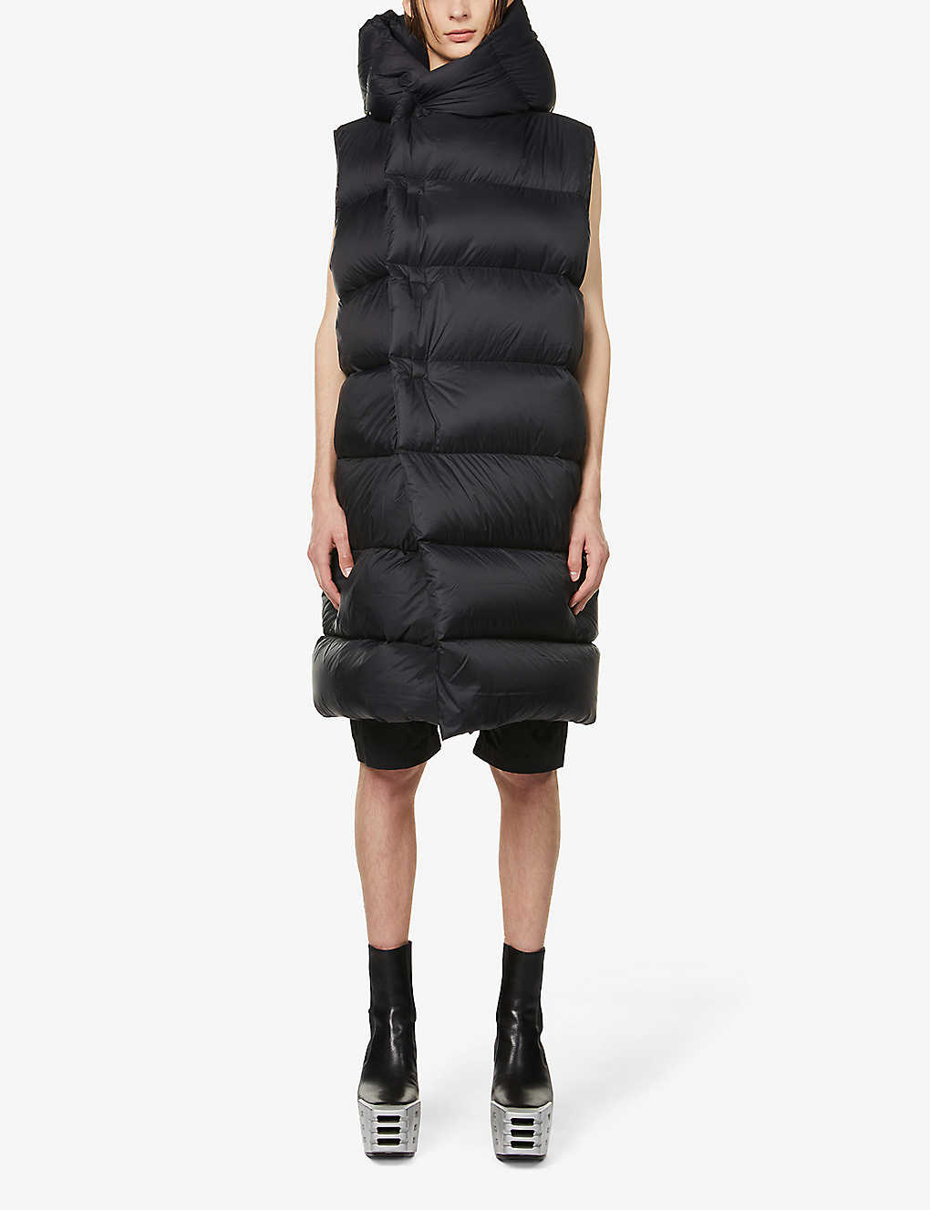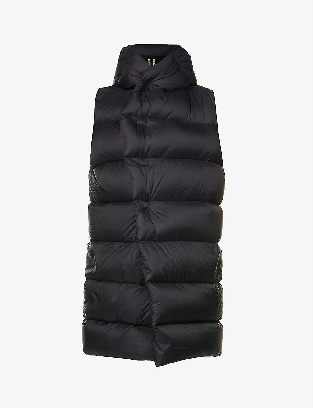 Padded Sleeveless Shell Down Black Puffer Long Vest