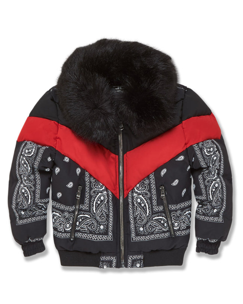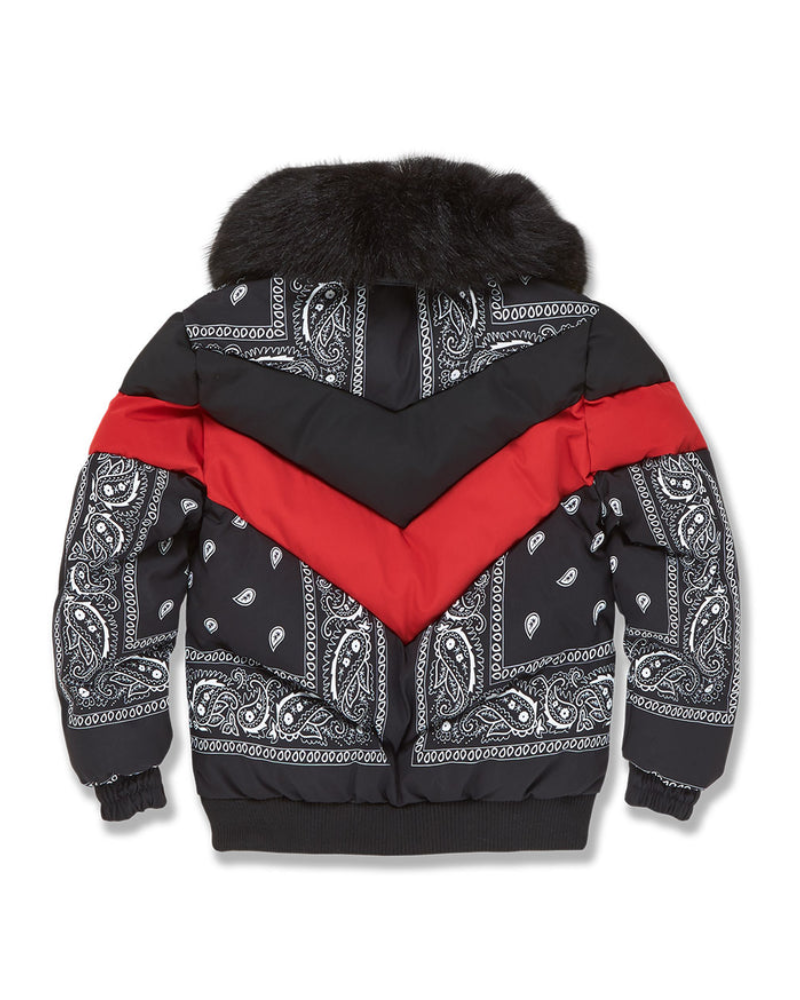 Paisley Bandana Print Black & Red Puffer Bomber Jacket