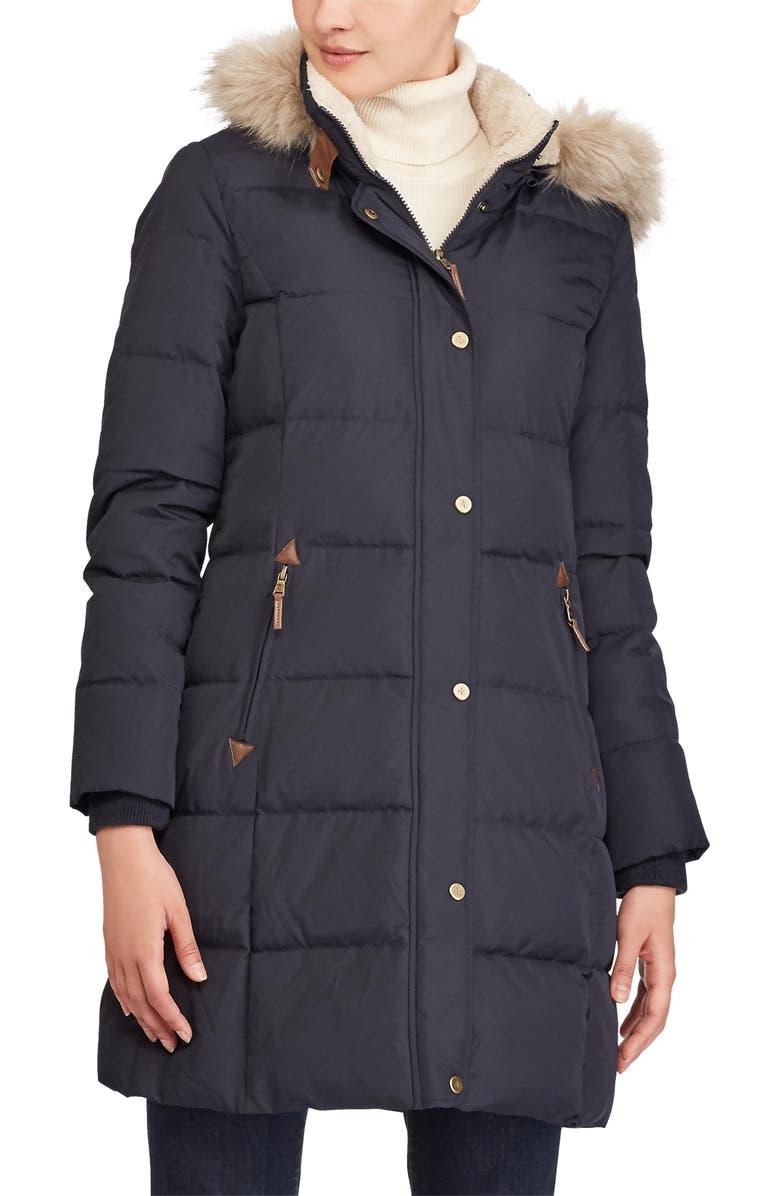Quilted Down Feather Fill Coat with Hood