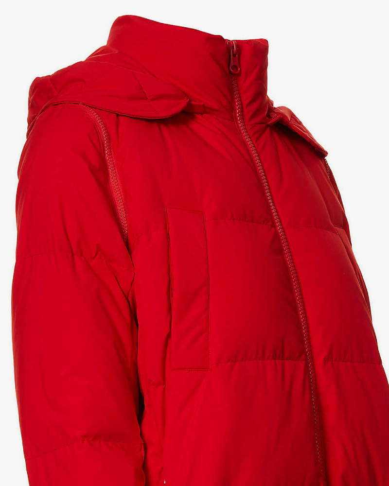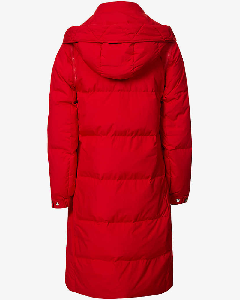 Quilted Hooded Shell Down Red Trench Puffer Coat