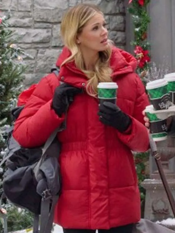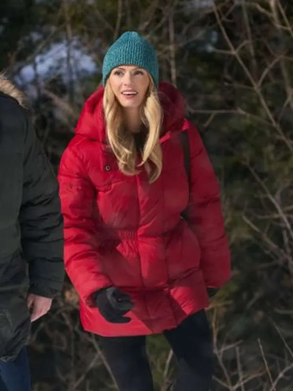 Rebecca Dalton Falling Like Snowflakes 2024 Teagan Red Puffer Hooded Jacket