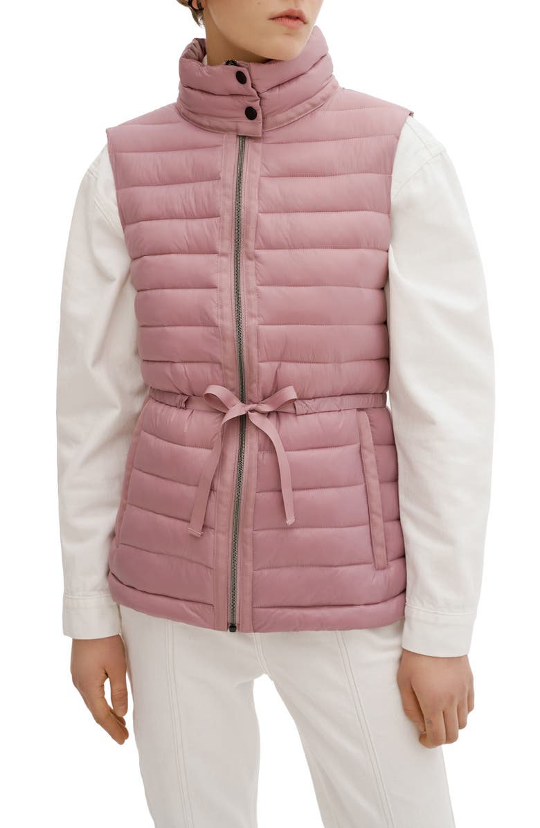 Rhea Puffer Pink Belted High Neck Vest