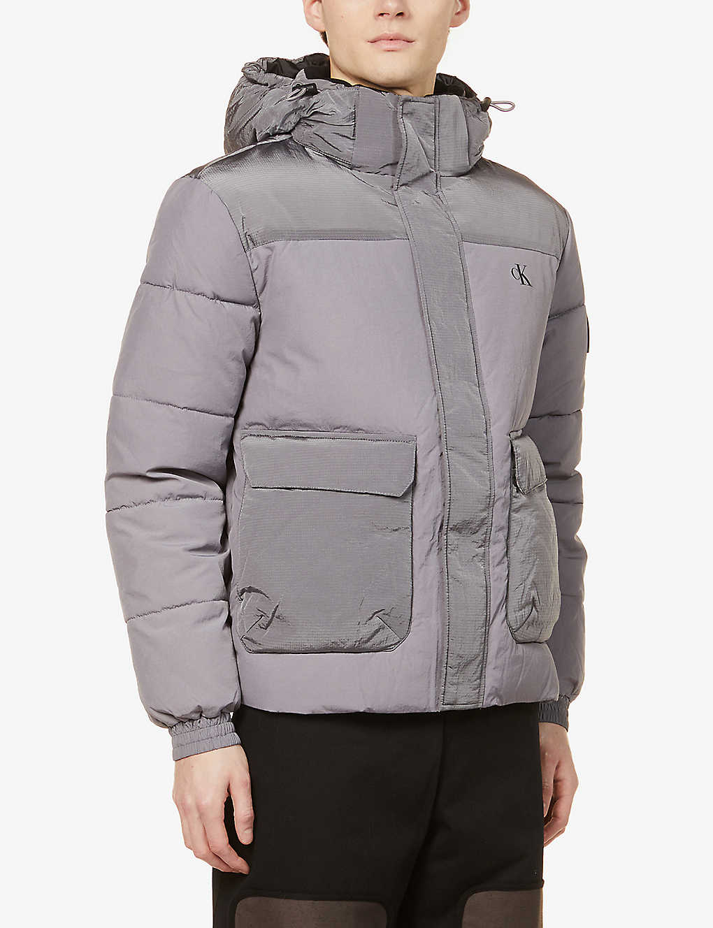 Ripstop Padded Shell Hooded Puffer Grey Jacket
