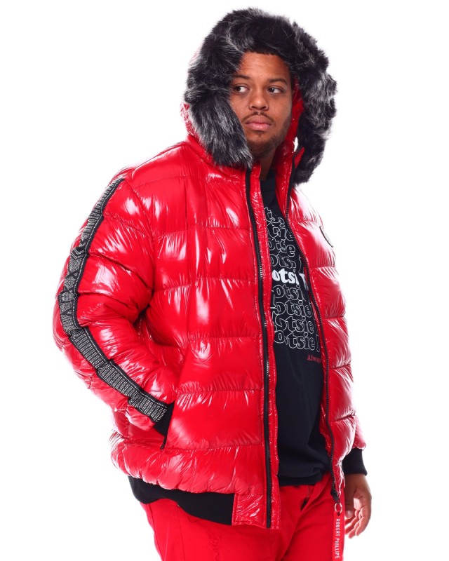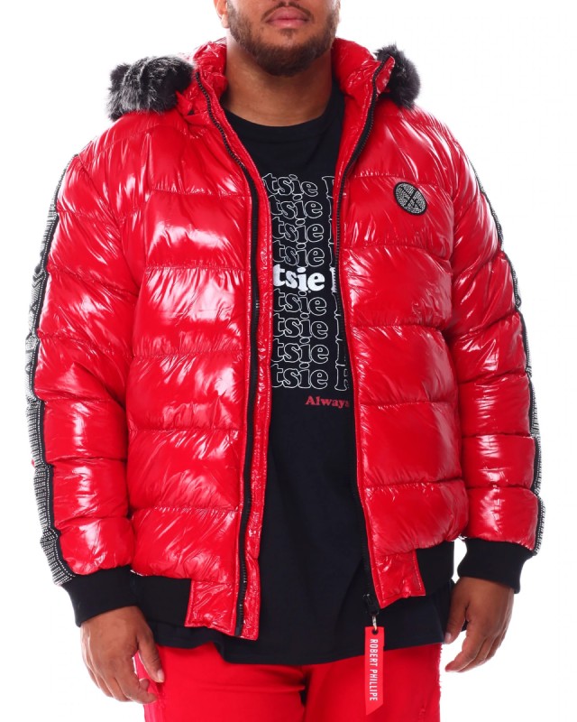 Robert Phillipe Glazed Nylon Puffer Red Jacket