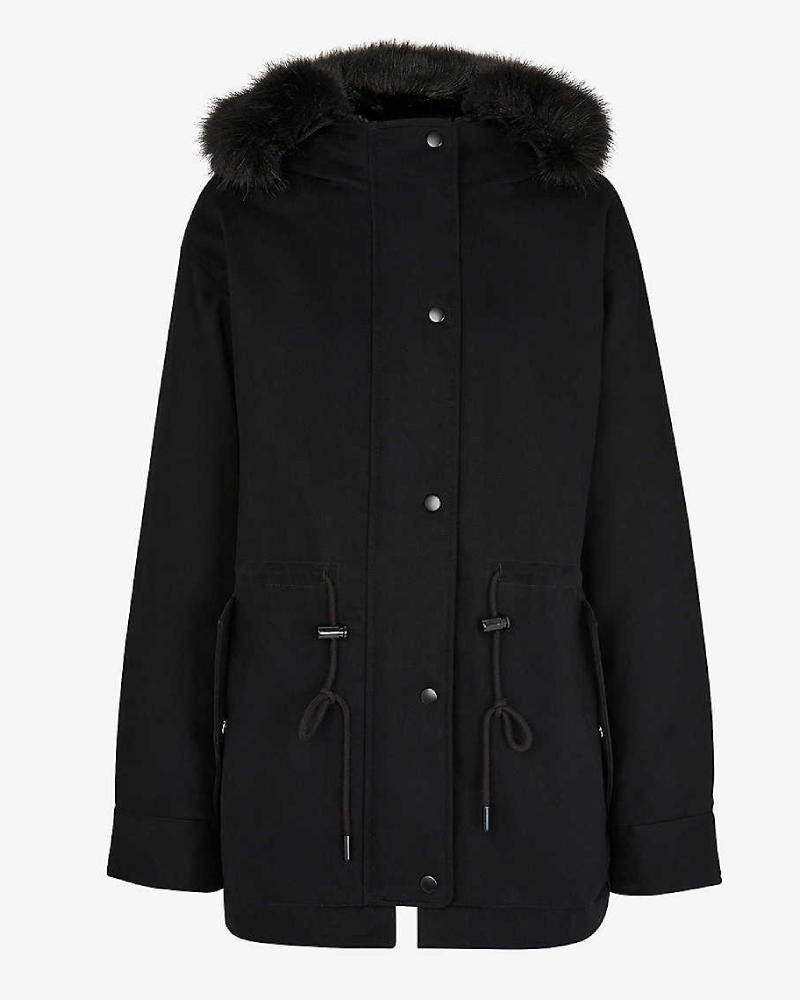Tessa Hooded Polyester Black Puffer Fur Hodded Jacket