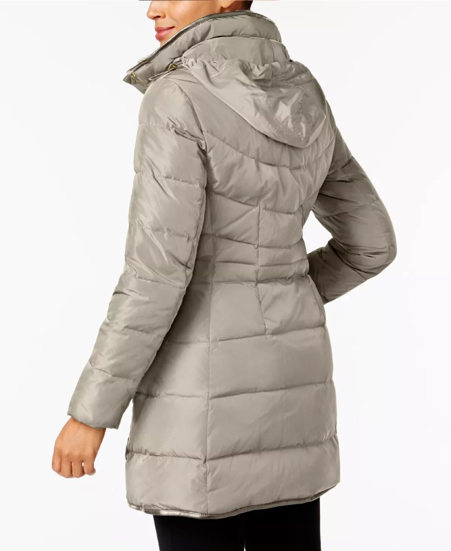 Women’s Faux-Fur Collar Down Puffer Grey Coat