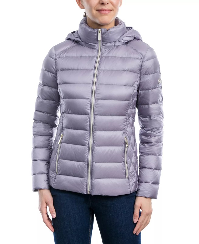 Women’s Hooded Packable Light Grey Puffer Jacket